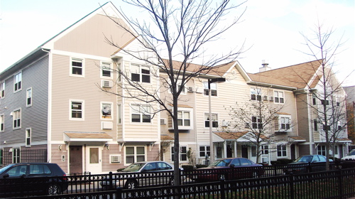 Replacement of a 1945 public housing development with a complete new community consisting of 535 units of family and elderly housing. Consisting of 415 wood frame walk-up family housing as townhouses and flats, a 120 unit midrise apartment building and a new 26,000 sf community center. New play spaces and open spaces and 75 off-street parking spaces. New housing and streets and traffic designed for security and defensible space. Housing is designed as small clusters in blocks to create a sense of community.