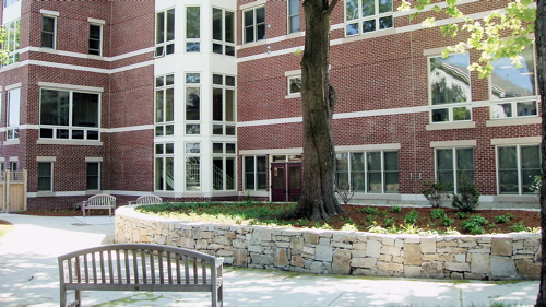 New 4 story brick and precast concrete trim consist of 46 unit of senior housing with 5,000 sq ft adult day health program. New building designed to fit into a Historic Register complex of 4 buildings, creating a senior community complex. Project financed under HUD 202 Program. Project is part of the Historic Elizabeth Carlton House campus.
